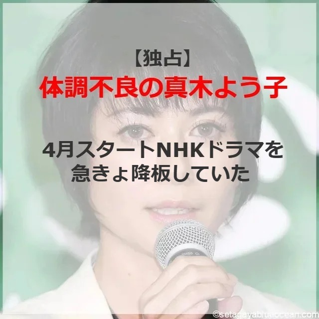 3月上旬に体調不良で入院していることが報じられた女優・真木よう子(41)。実は今春から始まるNHKドラマを急きょ降板していたことが判明した。