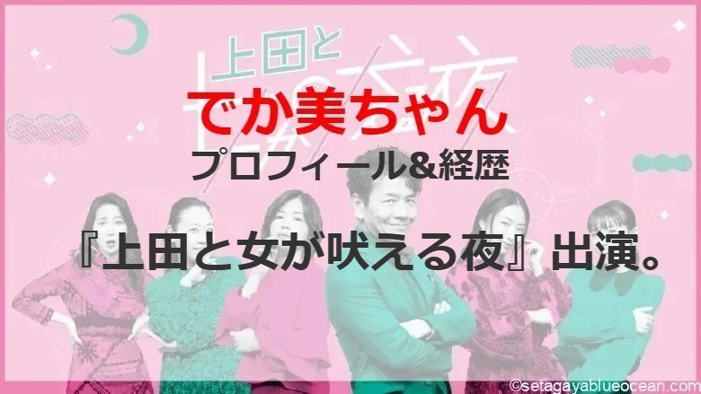 バラエティ番組『上田と女が吠える夜』(4月10日 水曜 21:00~)にでか美ちゃんが出演する。