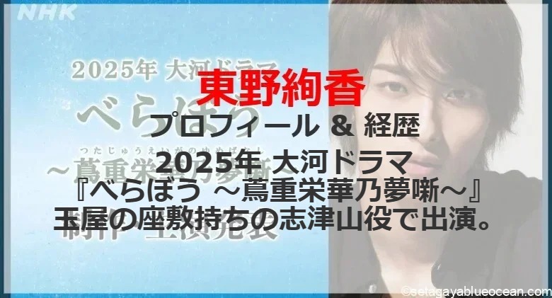 - 大河ドラマ べらぼう〜蔦重栄華乃夢噺〜(2025年〈予定〉、NHK) – 志津山 役