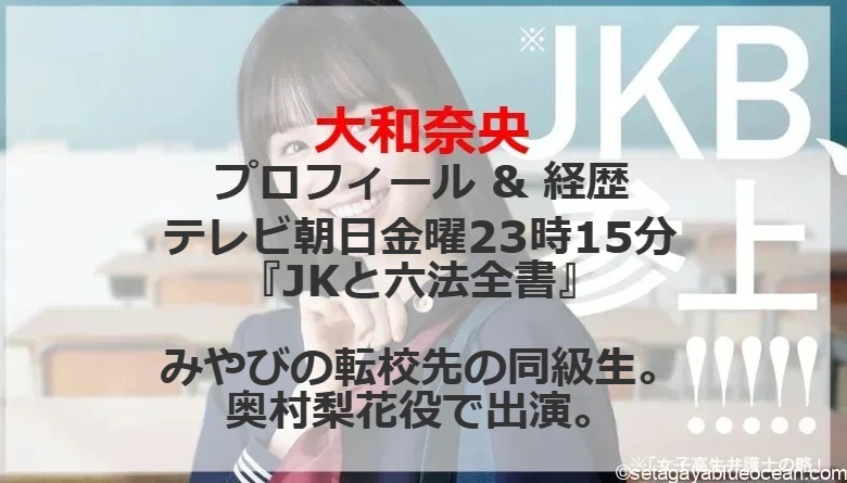 - JKと六法全書(2024年4月19日〈予定〉 – 、テレビ朝日) – 奥村梨花 役