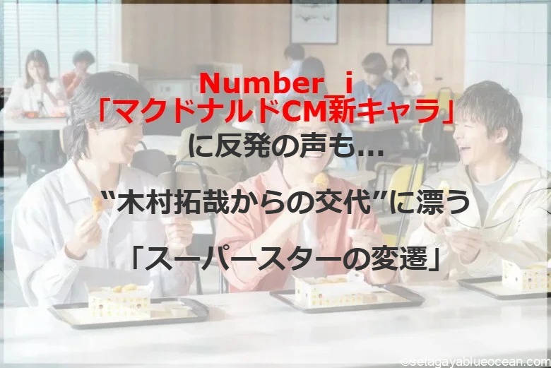 「木村さんのマクドナルドCMからの“降板”は、ジャニー氏の件が原因なのは間違いないでしょう。しかし、今回のNumber_iの起用には、日本の国民的存在、“スーパースター”の移り変わりを感じさせるところもありますね」