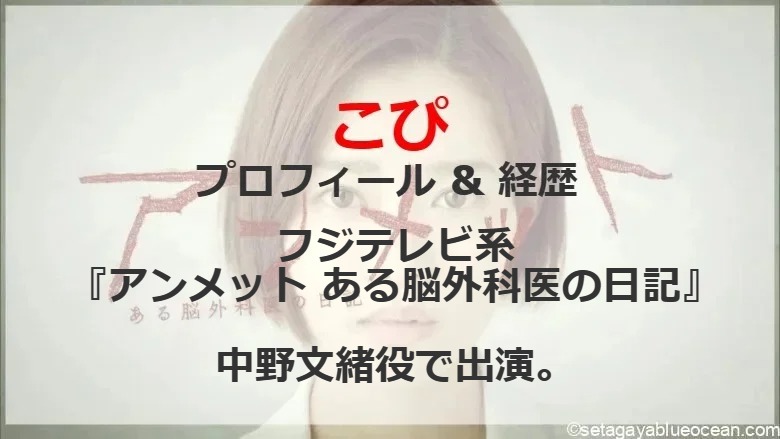 さて、看護師・中野文緒役を演じるこぴを紹介します。