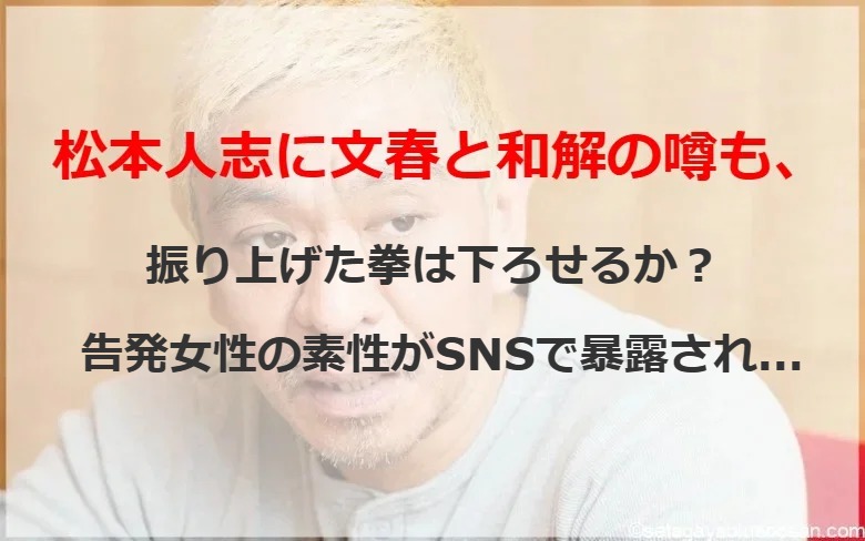 「吉本関係者と文春関係者が水面下で接触したようで、文春サイドは裁判を長引かせるつもりはないということのようです。真相はともかく、松本はかなりのダメージを受けたのは間違いない。和解案が出れば、双方が歩み寄りを見せると思いますが、文春側も記事の信憑性について揺らぐことはないでしょうし、松本側も主張している部分について絶対譲らないはずなので、妥協点を見出すのは相当難しいように思われます」(芸能ライター)
