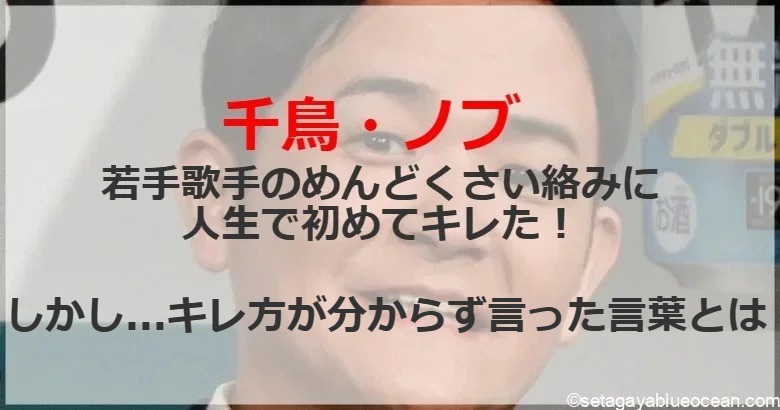 その後、その歌手は「すいませんでした」と軽く謝ってきたが、ノブは怒りが収まらなかったが人にキレたことがなかったため「俺の前に2度と顔見せるな」と漫画「北斗の拳」で出てくるフレーズを言い放つという変な怒り方をしてしまったという。