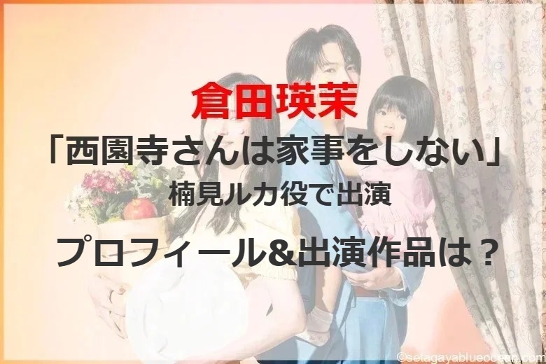 徹底して家事をしない主人公・西園寺一妃(松本若菜)と年下の訳ありシングルファーザーの楠見俊直(松村北斗)、その娘ルカ役で出演。
