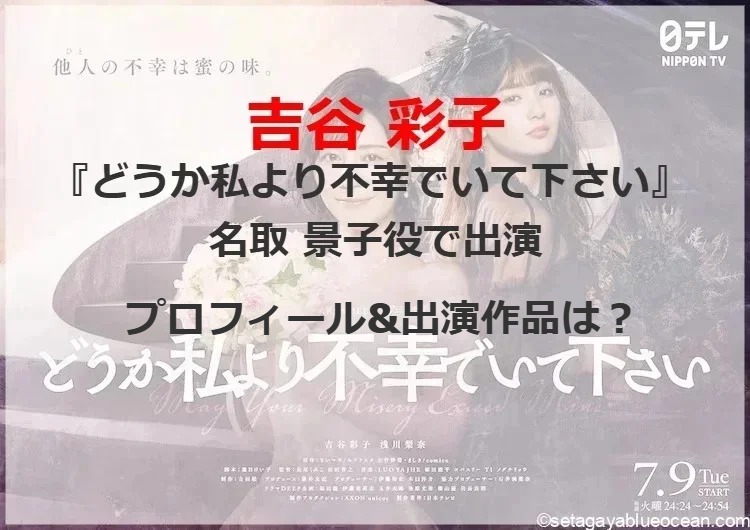 俳優の吉谷彩子と浅川梨奈が、日本テレビ系「ドラマDEEP」枠『どうか私より不幸でいて下さい』(7月9日スタート、毎週火曜 深0:24~深0:54)でW主演を務めることが13日、発表された。古谷と浅川は、壮絶なマウントバトルを繰り広げる姉妹を演じる。