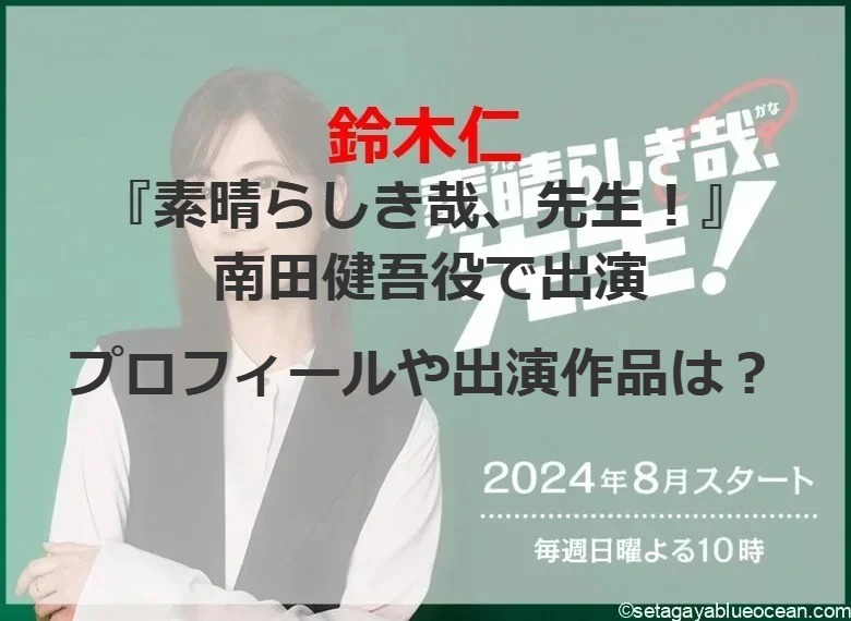 2024年夏ドラマABCテレビ『素晴らしき哉、先生!』生田絵梨花が地上波連続ドラマ初主演に挑む!