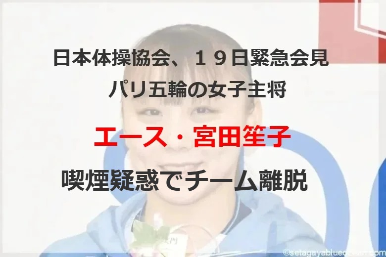 日本体操協会、19日緊急会見 パリ五輪の女子主将でエース・宮田笙子が喫煙疑惑でチーム離脱 五輪直前に激震