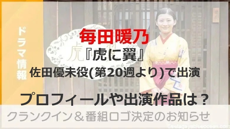 2020年11月30日から2021年5月14日まで2020年度後期放送のNHK「連続テレビ小説」第103作として放送された日本のテレビドラマ『おちょやん』竹井千代(幼少時代) 役、水野春子→竹井春子 役(二役)を演じた。