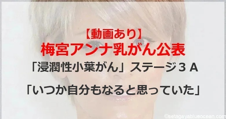 梅宮アンナ(51)が13日、ステージ3Aの乳がんと闘病中であることを自身のインスタグラムのライブ配信で発表した。診断は「浸潤性小葉がん」という希少な組織型のがんで、部位は右乳房。右腋窩(えきか、わきの下)のリンパ節転移があるという。5月下旬に異変に気付き、6月中旬に検査、7月上旬にがんと診断された。同31日からは手術前に抗がん剤治療を行う「術前化学療法」を開始したという。