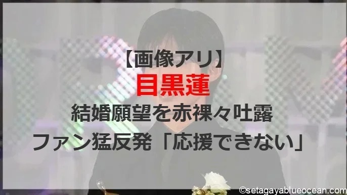 「目黒さんは『めちゃくちゃ結婚したい』と結婚願望があることを明かし、『僕も一人の人間なので、やっぱり結婚したいし、家庭ももちたい。結婚っていうものは、やっぱり一回きりの人生、したいなと思いますね』と本音を漏らしました。