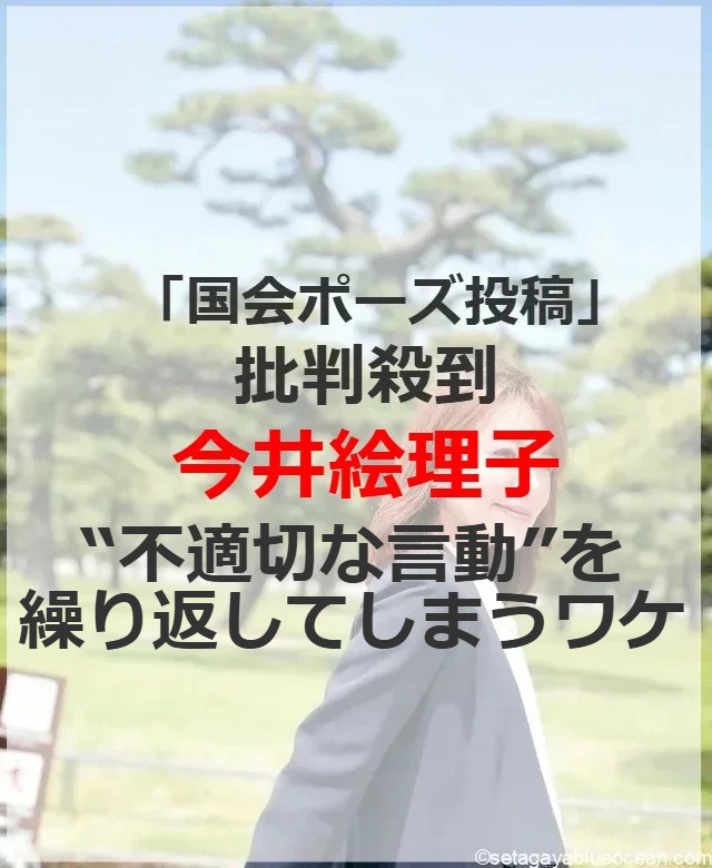 今井絵理子議員の張りぼてのイメージ写真と借り物の言葉だけでつぎはぎされたポエムは、国会のJ-POP化が定着したことを如実に表わしていると痛感しました。