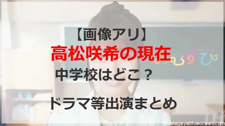 そんな高松咲希さんの現在と通っている中学校を紹介します。またこれまで出演したドラマ情報をまとめました。