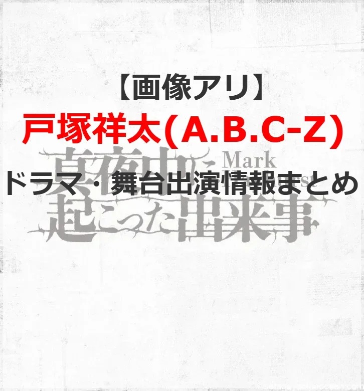 - 戸塚祥太(A.B.C-Z) 舞台出演情報まとめ