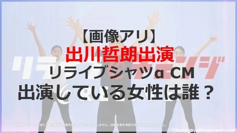 着る医療機器として放送されている出川哲朗さん出演のCM『リライブシャツα』に出川哲朗さんと共に出演されている女性は誰でしょう?