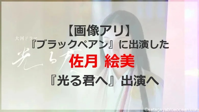 11月17日から『ブラックペアン2』最終話に出演した佐月 絵美が、大河ドラマ『光る君へ』出演することとなった。