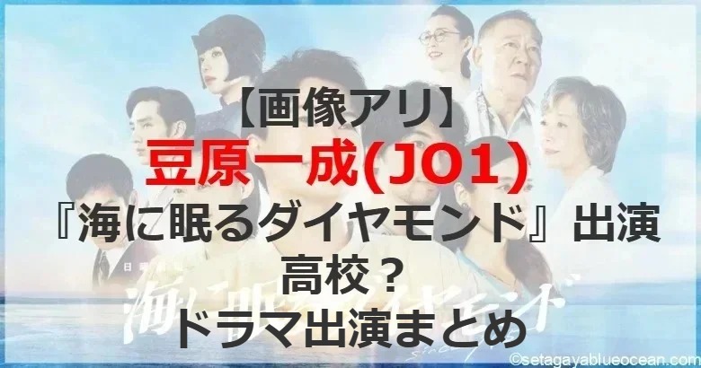 『海に眠るダイヤモンド』の完成度が高いと評価が続いている。そのキャストの中にJO1の豆原一成さんが。出身高校やドラマ出演まとめを紹介します。