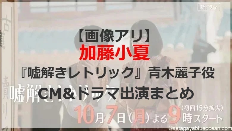 テレビ東京『ウイングマン』で注目された俳優・加藤小夏さんが『嘘解きレトリック』にゲスト出演。これまで加藤小夏さんが出演したCMやドラマも合わせて紹介します。