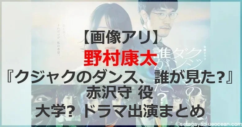 浅見理都「クジャクのダンス、誰が見た?」がドラマ化され、2025年1月よりTBSにて放送される。主人公・山下心麦(やましたこむぎ)役は広瀬すず、松風義輝(まつかぜよしてる)役は松山ケンイチが演じる。俳優・野村康太が赤沢守 役で出演。野村康太さんを紹介します。
