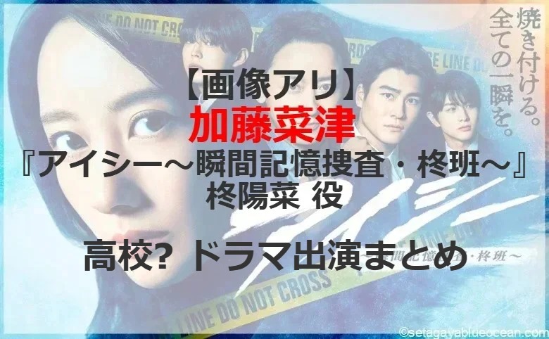 波瑠が主演を務める連続ドラマ『アイシー~瞬間記憶捜査・柊班~』が、2025年1月21日よりフジテレビ系火9ドラマ枠で放送される。加藤菜津さんが柊陽菜 役で出演。加藤菜津さんを紹介します。