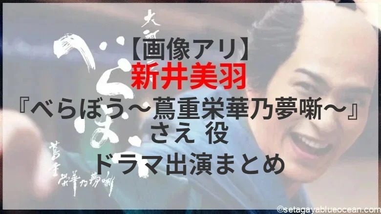 俳優の横浜流星が主演を務める、大河ドラマ『べらぼう~蔦重栄華乃夢噺~』新井美羽さんがさえ 役で出演。