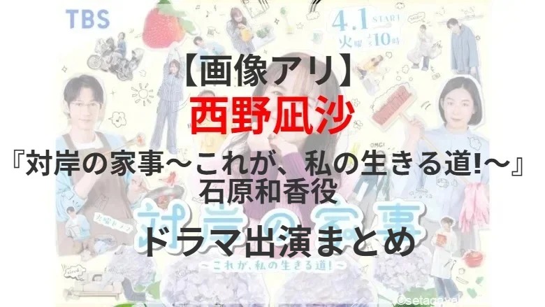多部未華子が主演するドラマ『対岸の家事~これが、私の生きる道!~』(TBS系/毎週火曜22時)の初回放送日が、4月1日に決定。西野凪沙さんが石原和香役で出演。