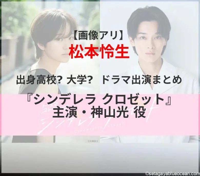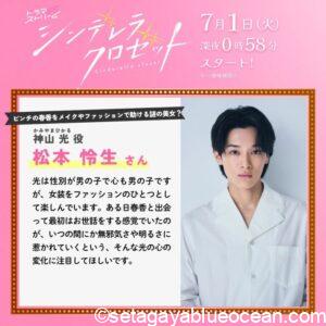 7月1日よりTBSで放送がスタートするドラマストリーム『シンデレラ クロゼット』。自分なりの美を追求する専門学生で女装男子の神山光役を松本怜生さんが演じる。さて松本怜生さんの出身高校・大学は?出演したテレビドラマは?