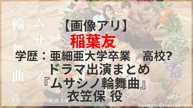 テレビ朝日系で放送している正門良規(Aぇ! group)主演ドラマ『ムサシノ輪舞曲』。10年の片思いを動かすきっかけを作るバツイチ色男のテーラー・衣笠保役として稲葉友が演じる。さて、稲葉友さんの出身高校を含む学歴? またこれまでのテレビドラマ出演作品?