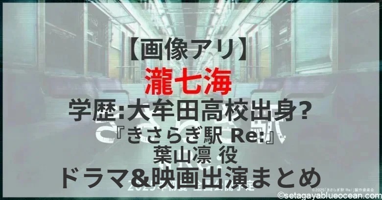 永江二朗監督による大ヒットホラー映画『きさらぎ駅』の続編『きさらぎ駅 Re:』が、6月13日に劇場公開された。前作に続き『きさらぎ駅 Re:』に葉山凛 役で瀧七海さん出演。瀧七海さんの出身高校? これまで出演したテレビドラマや映画作品は?