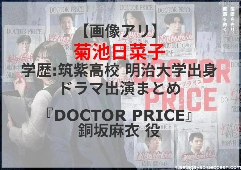 日本テレビ系で7月6日にスタートする岩田剛典(三代目 J SOUL BROTHERS)主演のドラマ「DOCTOR PRICE」(日曜午後10:30=読売テレビ制作)鳴木金成(岩田剛典)の父の医療過誤により昏睡状態となった患者・銅坂麻衣役を菊池日菜子さんが演じる。さて、菊池日菜子さんの出身高校? 出身大学? これまで出演したテレビドラマは?