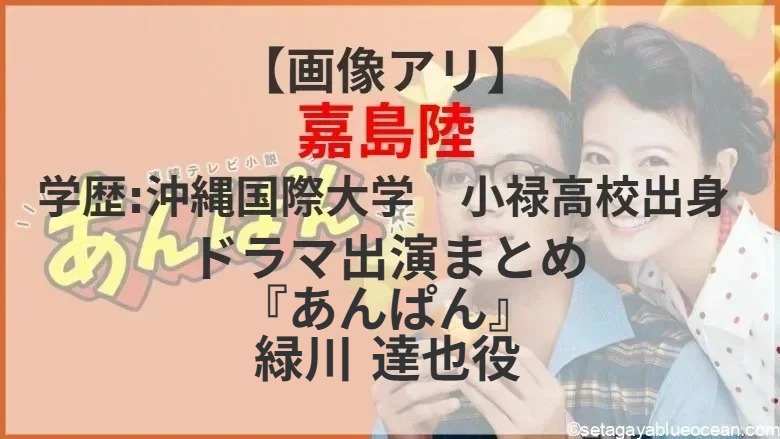 NHK連続テレビ小説 『あんぱん』第14週「幸福よ、どこにいる」に高知新報の編集局記者・緑川達也役で嘉島陸さん登場。さて、嘉島陸さんの出身高校や出身大学は? これまで出演したテレビドラマは?