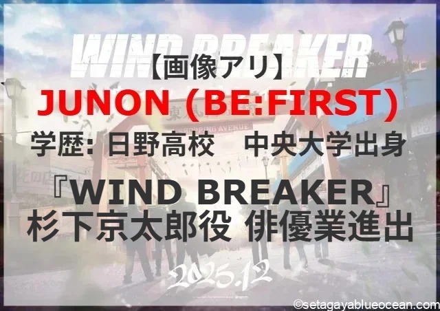 ダンス&ボーカルグループ・BE:FIRSTのJUNONが、実写映画『WIND BREAKER』(12月公開 公式略称:ウィンブレ)に本格演技初挑戦。さて、JUNONの出身高校? 出身大学?