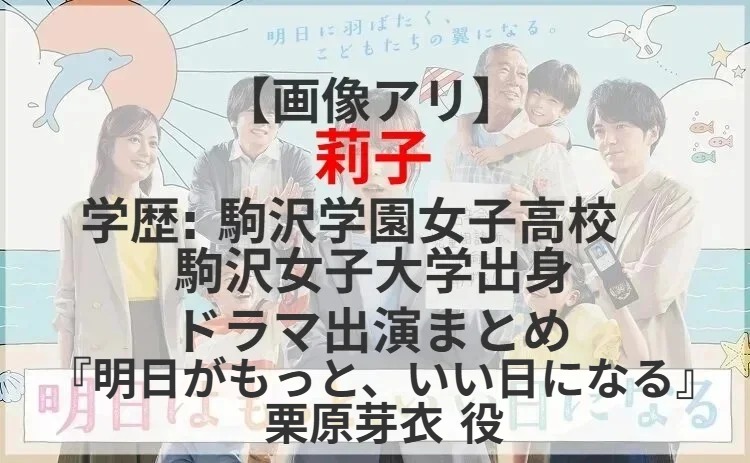 7月に放送スタート福原遥が主演を務め、林遣都が共演するドラマ『明日はもっと、いい日になる』(フジテレビ系/毎週月曜21時)一時保護所で新人保育士として働く栗原芽衣役を莉子さんが演じる。さて、莉子さんの出身高校? 出身大学? これまで出演したテレビドラマは?