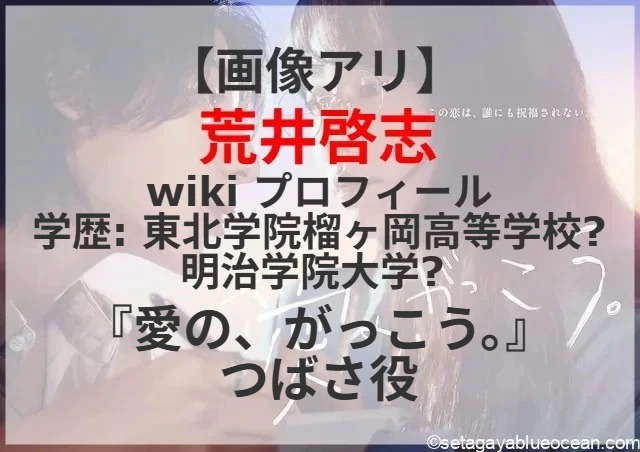 木村文乃が主演し、ラウール(「Snow Man」)が共演するフジテレビの7月期・木曜劇場「愛の、がっこう。」(毎週木曜午後10時~10時54分)ホストクラブ『THE JOKER』No.1ホスト・つばさ役を荒井 啓志さんが演じる。さて、荒井啓志さんのプロフィール? 出身高校? 出身大学? これまで出演したテレビドラマ?