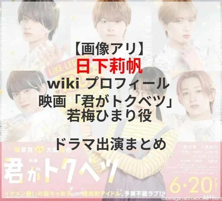 女優の畑芽育となにわ男子の大橋和也がW主演を務める映画『君がトクベツ』(6月20日公開)若梅さほ子(畑芽育)の妹・若梅ひまり役を子役・日下莉帆さんが演じる。さて、日下莉帆さんのプロフィール? これまで出演したテレビドラマ?