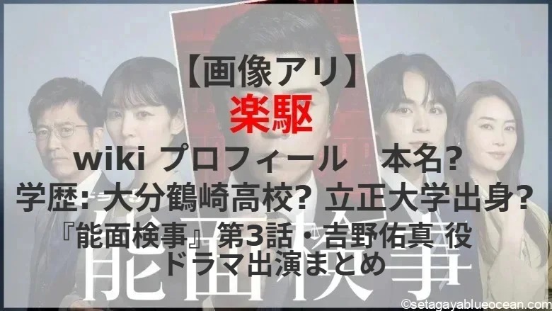 上川隆也が主演する7月11日スタートのドラマ『能面検事』(テレビ東京系/毎週金曜21時)第3話ゲストに吉野佑真 役で楽駆さん出演。さて、楽駆さんのプロフィール? 本名? 学歴? これまで出演したテレビドラマ?
