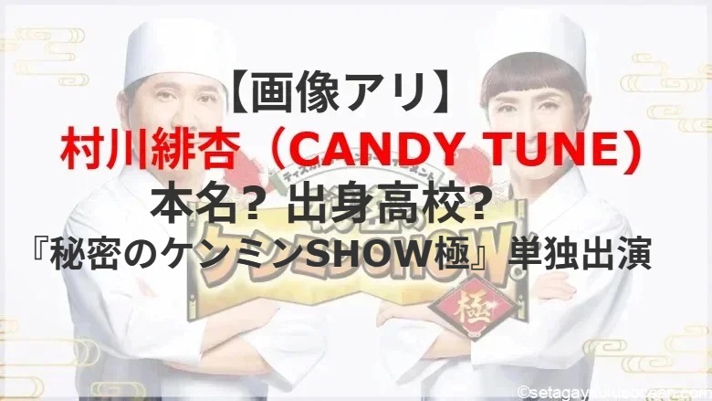 7月10日放送の『秘密のケンミンSHOW極』に村川緋杏さん(CANDY TUNE)単独で出演。村川緋杏って本名? 出身高校は?