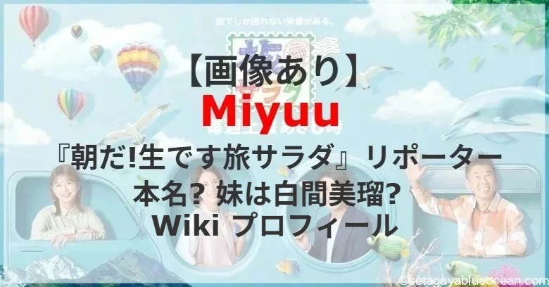 土曜日朝放送されている『朝だ!生です旅サラダ』に海外リポーターとして出演しているMiyuuさん。Miyuuさんの本名? 白間美瑠さんは姉妹? プロフィールは?