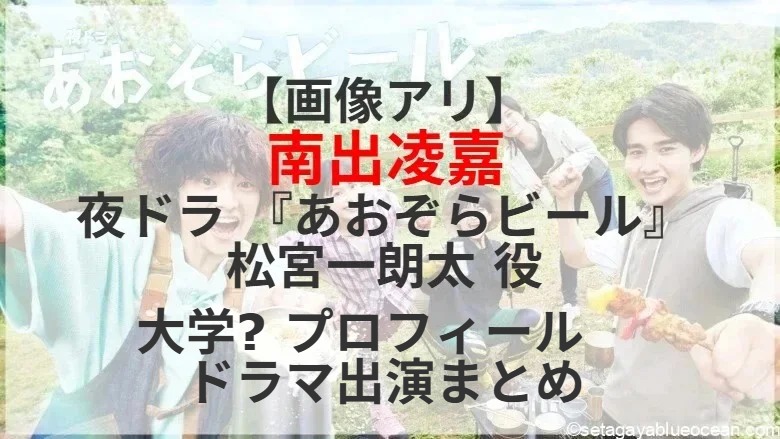 窪塚愛流さんNHKドラマ初主演の夜ドラ『あおぞらビール』(毎週月曜〜木曜、22時45分から・NHK総合)松宮一朗太 役を南出凌嘉さんが演じる。南出凌嘉さんが通っている大学は? プロフィールは? これまで出演したテレビドラマは?