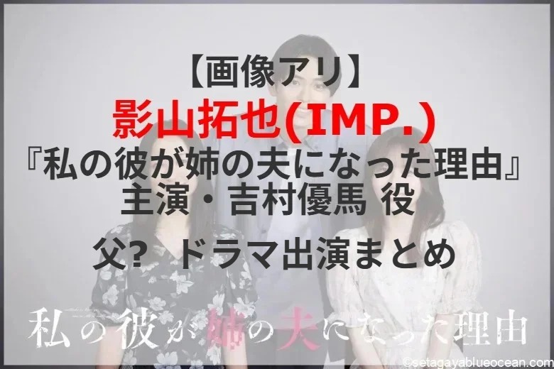 MBSドラマフィル枠にて8月7日より放送される秋田汐梨×IMP.影山拓也×高田里穂トリプル主演ドラマ『私の彼が姉の夫になった理由』主演・吉村優馬 役で影山拓也さん出演。さて、影山拓也さんの父親は? プロフィールは? これまで出演したテレビドラマは?
