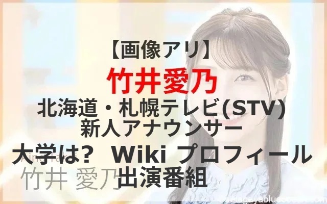テレビキー局に採用された新人アナウンサー全国ネット番組でデビューし始めている。そんな中北海道にある札幌テレビ(STV)新人アナウンサーである竹井愛乃さんが注目されているが、現在北海道ローカルのみしか確認できない!その竹井愛乃さんのプロフィールや出身大学等について紹介します。