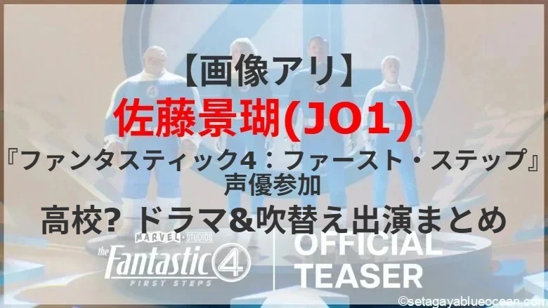 マット・シャクマンの監督作「ファンタスティック4:ファースト・ステップ」は、7月25日に日米同時公開される。JO1の佐藤景瑚さんが今作の日本語吹替版に“一言”声優として参加する。さて、佐藤景瑚さんの出身高校は? これまで出演したテレビドラマは?吹替えに参加した作品は?