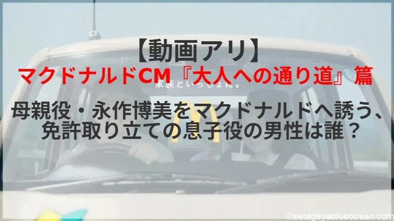 マクドナルド CM『大人への通り道』篇。運転免許を取りたての息子が、母親(永作博美)をマクドナルドへ買い物を誘いドライブスルーを利用するCM。このCMでぎこちない演技(免許取り立てで行動や運転がぎこちない設定)を披露している男性は誰?