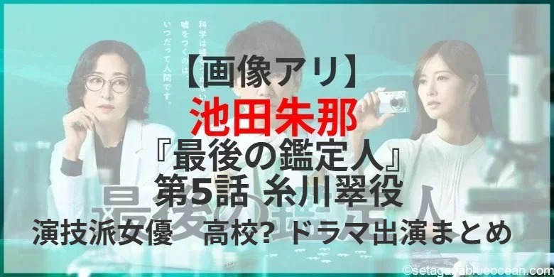 藤木直人が主演を務める、科学捜査で難事件の真相を暴く本格サイエンスミステリードラマ「最後の鑑定人」(毎週水曜夜10:00-10:54、フジテレビ系)鑑定所に都丸勇人(中沢元紀)がやってきて、河原で亡くなっていた糸川翠が他殺であることを証明してほしいと依頼する。この糸川翠役を池田朱那さんが演じる。池田朱那さんの出身高校は?これまで出演したテレビドラマは?