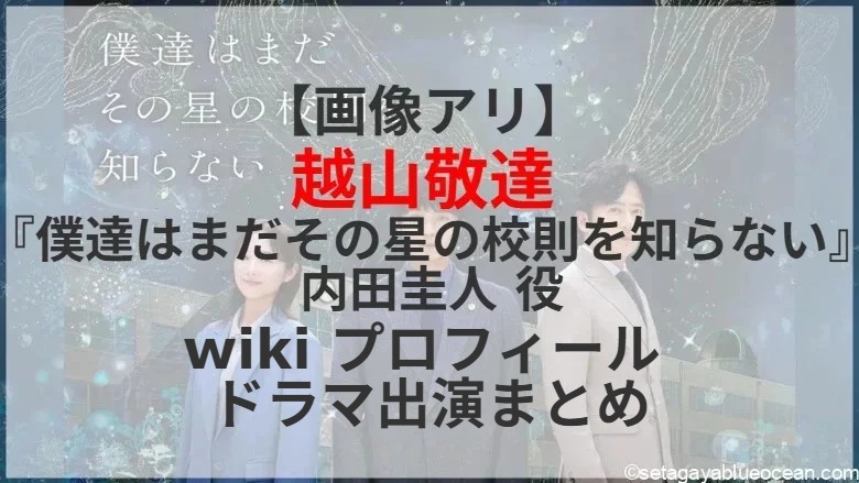 磯村勇斗が演じる、独特の感性を持つがゆえに何事にも臆病で不器用なスクールロイヤー(学校弁護士)が、法律や校則では簡単に解決できない若者たちの青春に、必死に向き合っていく学園ヒューマンドラマ「僕達はまだその星の校則を知らない」(毎週月曜夜10:00、フジテレビ系)。生物科学部の内田圭人役を越山敬達さんが演じる。越山敬達さんのプロフィールは? これまで出演したテレビドラマは?