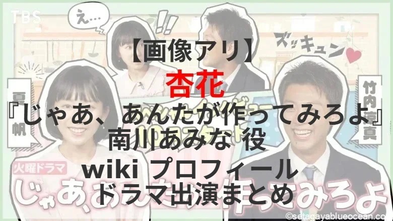 俳優の夏帆、竹内涼真がW主演を務める、10月スタートのTBS系火曜ドラマ『じゃあ、あんたが作ってみろよ』(毎週火曜 後10:00)南川あみな 役を杏花さんが演じる。杏花さんのプロフィールは? これまで出演したテレビドラマは?