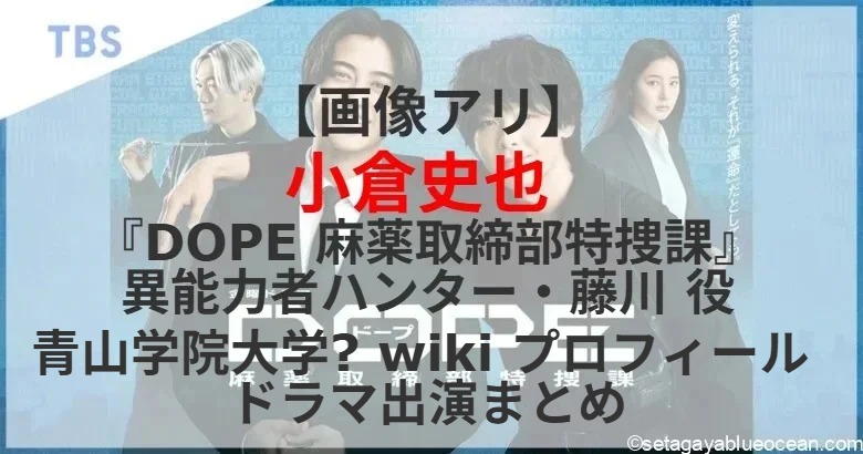 人気グループ「King & Prince」の高橋海人さんと俳優の中村倫也さんダブル主演の連続ドラマ「DOPE 麻薬取締部特捜課」(TBS系、金曜午後10時) 異能力者ハンター・藤川 役を小倉史也さんが演じる。小倉史也さんの出身大学は? プロフィールは?これまで出演したテレビドラマは?