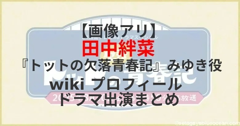24時間テレビ ドラマスペシャル『トットの欠落青春記』戦争が終わった直後の1946年からスタート。「神様は、どんな人間にも、必ず、飛び抜けた才能を1つ与えてくださっている」――。子どもの頃から落ち着きがなく、興味のあることに夢中になると周りがまったく目に入らない、猪突猛進な行動力で女学生時代も数々のハプニングを起こしていく徹子… 黒柳徹子の女学校時代のお友達・みゆき役を田中絆菜さんが演じる。田中絆菜さんのプロフィールは? これまで出演したテレビドラマ作品は?
