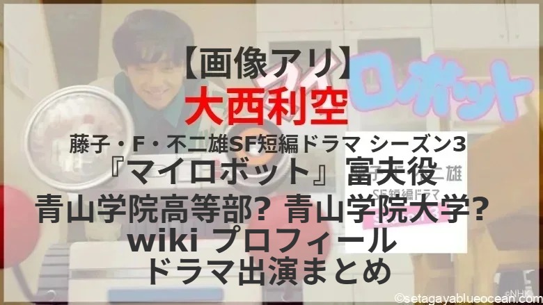 藤子・F・不二雄SF短編ドラマ シーズン3。国民的漫画「ドラえもん」の生みの親 藤子・F・不二雄が描いた刺激的でシュールなSF短編漫画を実写化!『マイロボット』富夫役を大西利空さんが演じる。大西利空さんの出身高校は? 在籍する大学は? これまで出演したテレビドラマは?