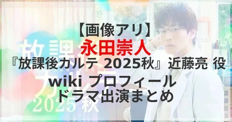 松下洸平主演のスペシャルドラマ『放課後カルテ2025秋』(日本テレビ系 9月24日(水)午後9時~10時54分)。牧野峻(松下洸平)が病院で担当する患者の保護者・近藤亮役を永田崇人さんが演じる。永田崇人さんのプロフィールは? これまで出演したテレビドラマは?